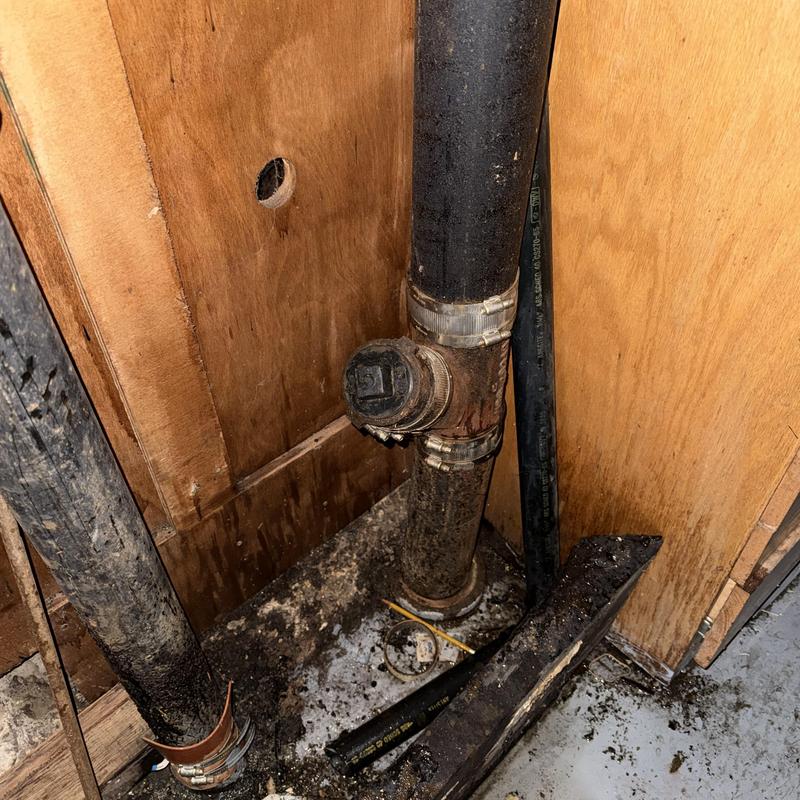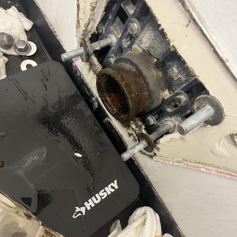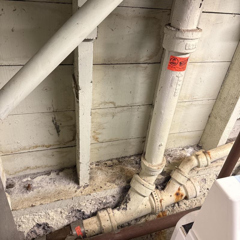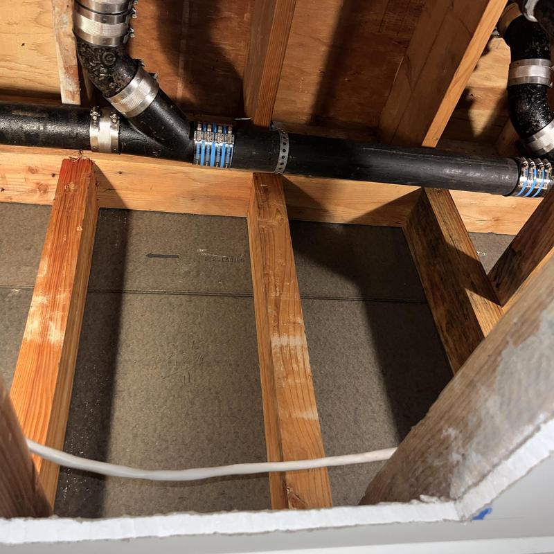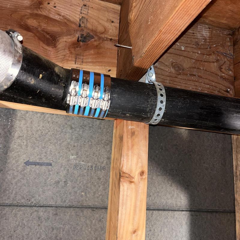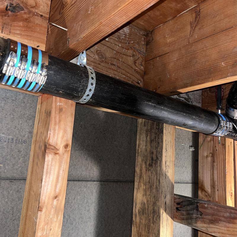 Heises Plumbing replaced a damaged 3-inch cast iron drain line at a property in San Francisco, California. Technicians installed four feet of new pipe with two 3-inch couplings, secured the section, and tested the system using a hose bib. No leaks were detected during the inspection.