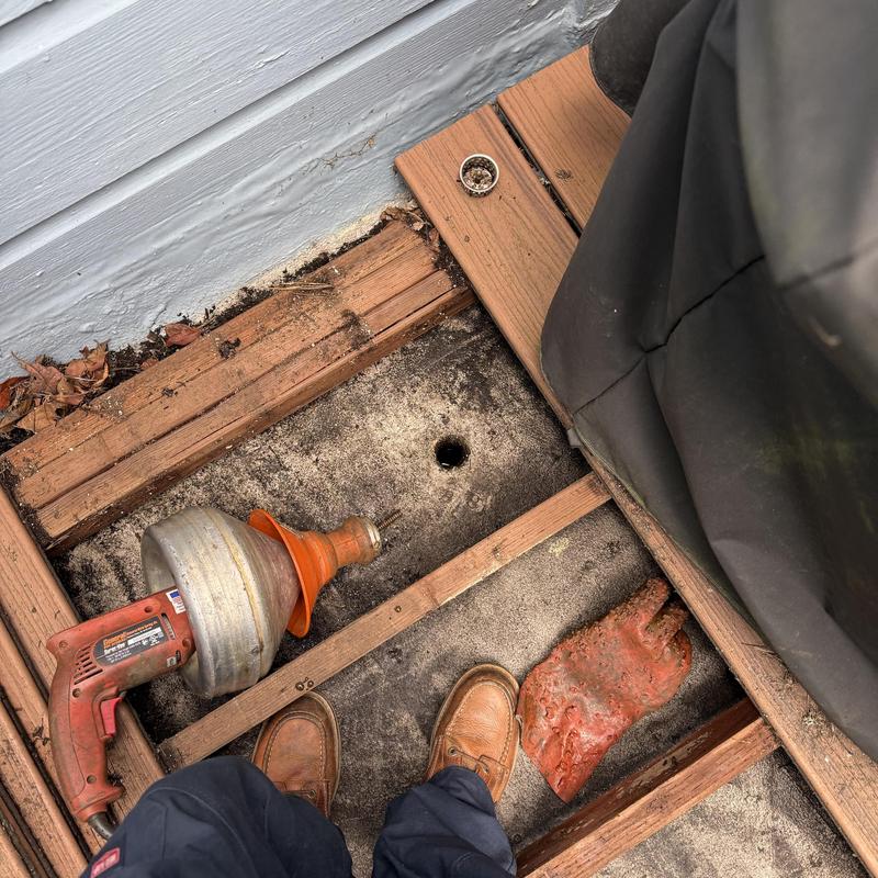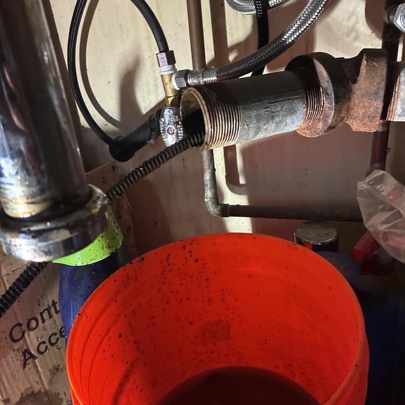 A plumber cleared a sewer main line and removed a kitchen clog during an emergency service in Portola Valley, California. The team snaked the main line and confirmed that water flowed correctly through the system. The issue involved sink water backing up through a floor drain, which was resolved during the visit.