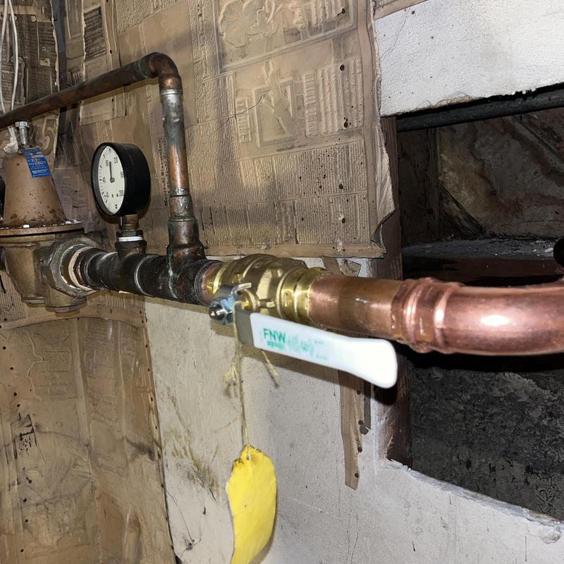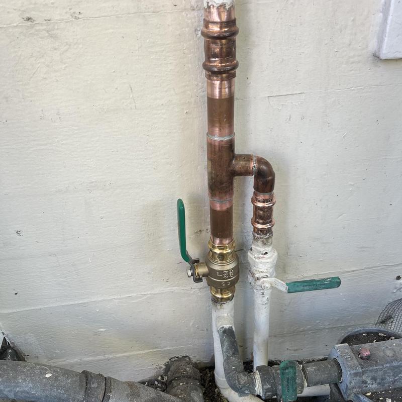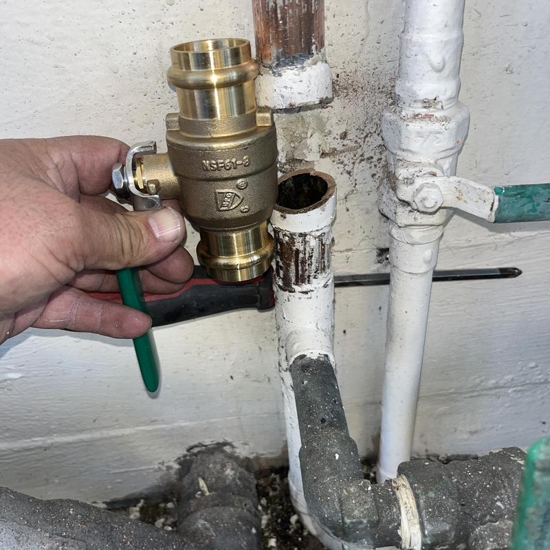 Heises Plumbing replaced a 1-inch shut-off valve at a residence in San Francisco, California. The work included installing a 1-inch ProPress valve using copper fittings and connections. All parts were pressed, secured, and tested to confirm proper function without leaks.
