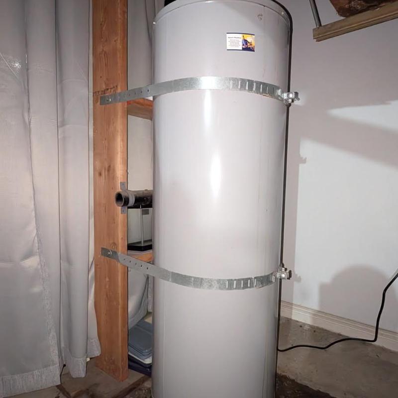 Heise's Plumbing replaced a 40-gallon water heater in San Francisco, CA. The team removed the old unit, installed a new gas shut-off valve, added supply hoses and MIP fittings, and secured the new heater with a seismic strap kit. The installation included testing and was completed in about two hours.