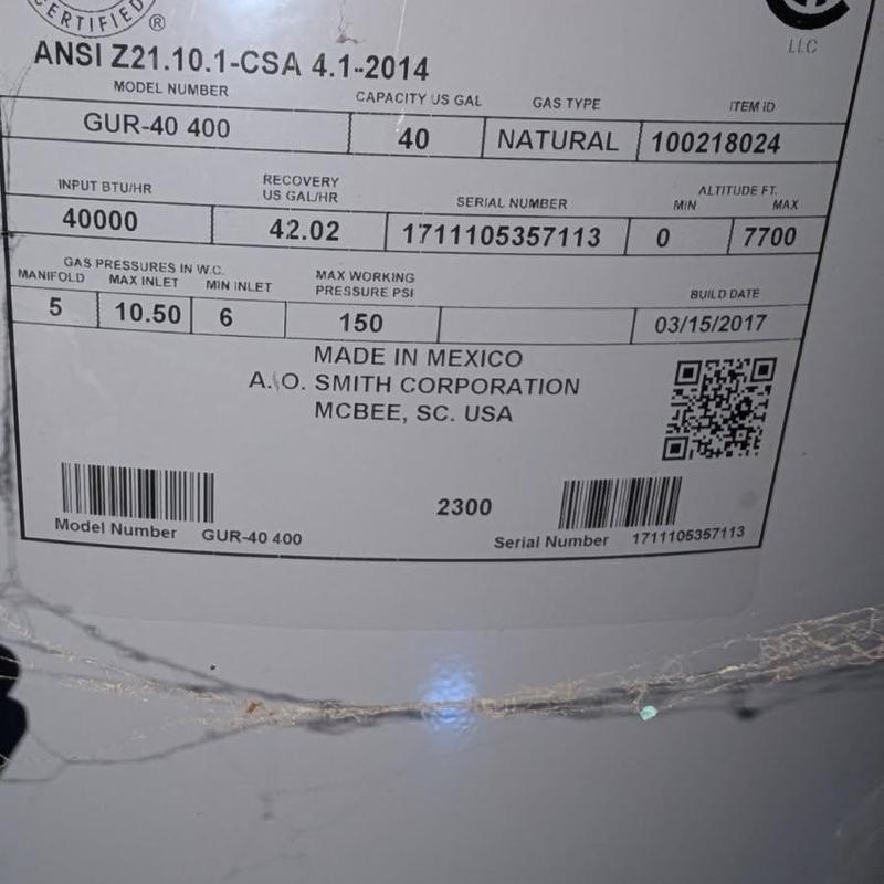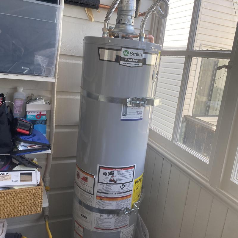 A licensed plumber installed a 40-gallon AO Smith water heater in Daly City, California. The service included removing the old unit, connecting the new heater to water, gas, and venting lines, securing it with earthquake strapping, and performing safety checks and startup testing to ensure proper operation.