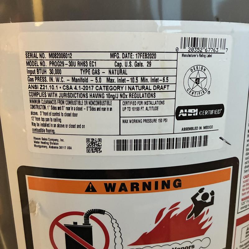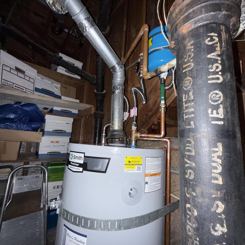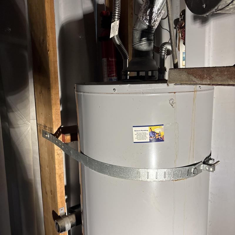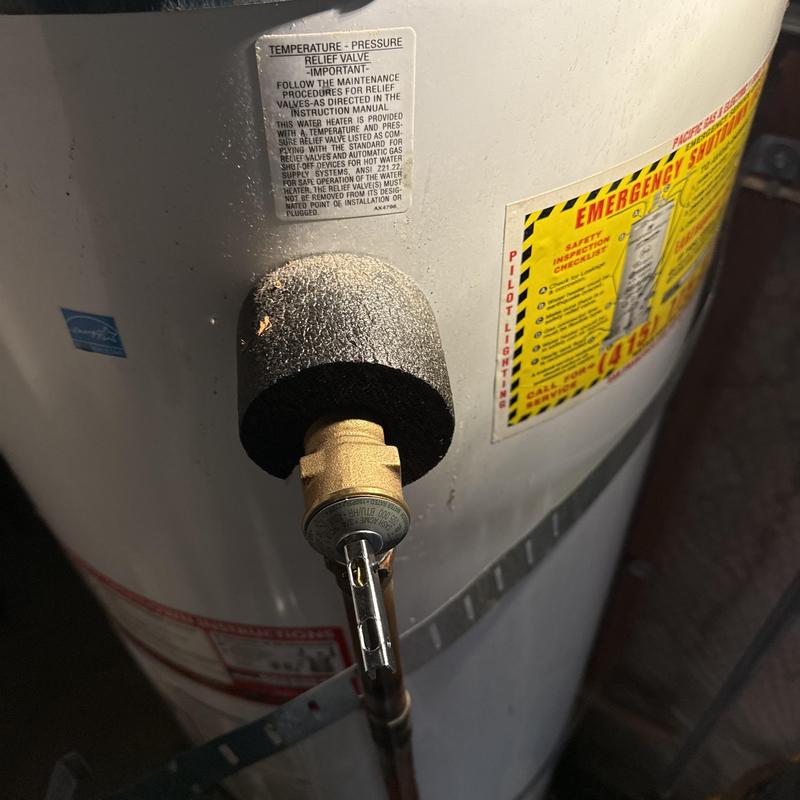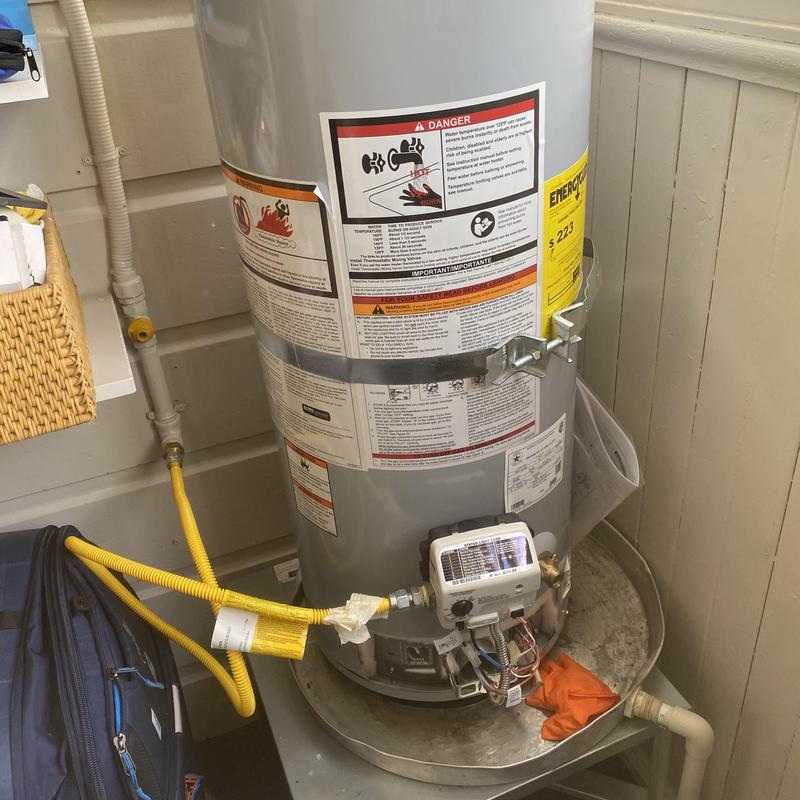 Heises Plumbing installed a 50-gallon gas water heater at a single-family home in San Mateo, California. The team re-piped the drain line, replaced the gas and water shutoff valves, and added earthquake safety straps. All gas, water, and vent connections were tested for leaks and verified for proper operation.
