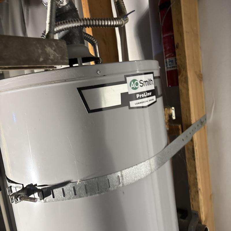 Heise's Plumbing installed a 50-gallon A.O. Smith water heater in San Francisco, California. The team replaced the water valve and gas valve, added earthquake strapping to meet local code, and tested the system for proper operation.