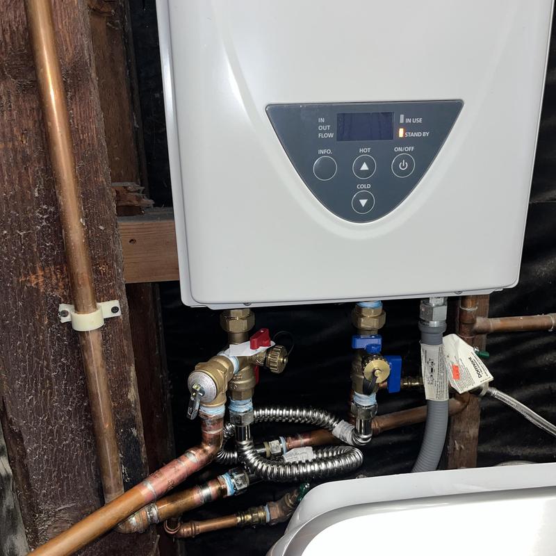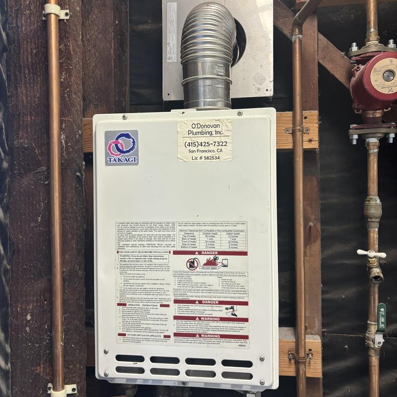 Heises Plumbing replaced a tankless water heater at a San Francisco, California residence. The team removed the old unit, installed a new system using copper fittings and valves, bled the lines to clear air, and tested all connections for proper function. The installation met all operational standards.