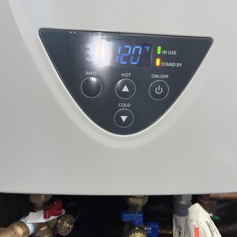 Heises Plumbing replaced an outdoor tankless water heater in Burlingame, California. The team installed new isolation valves, ran a new gas line, completed pressure testing, and hard-wired the electrical connection. They verified proper operation and confirmed hot water flow with no leaks detected.