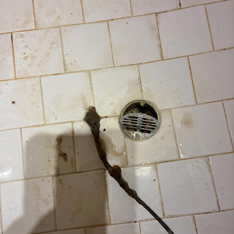 Heises Plumbing cleared a blocked shower drain in San Francisco, California. Technicians used a drain snake to remove hair buildup. They tested the drain by running the shower and confirmed proper water flow was restored.