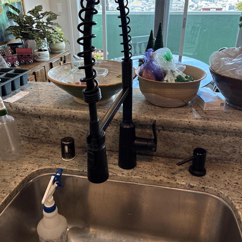 Heises Plumbing completed tub faucet, kitchen faucet, and air gap repairs at a residence in San Francisco, California. Technicians secured a loose shower handle, reinforced a kitchen faucet by modifying the sink base, and replaced an air gap to improve drainage. All plumbing fixtures were tested and are working correctly.