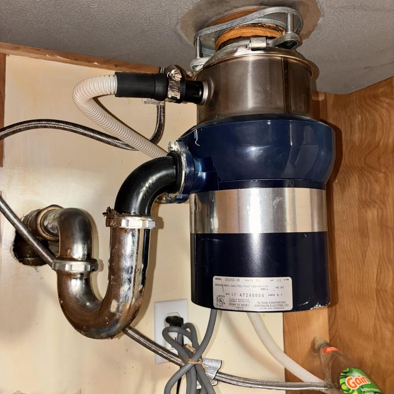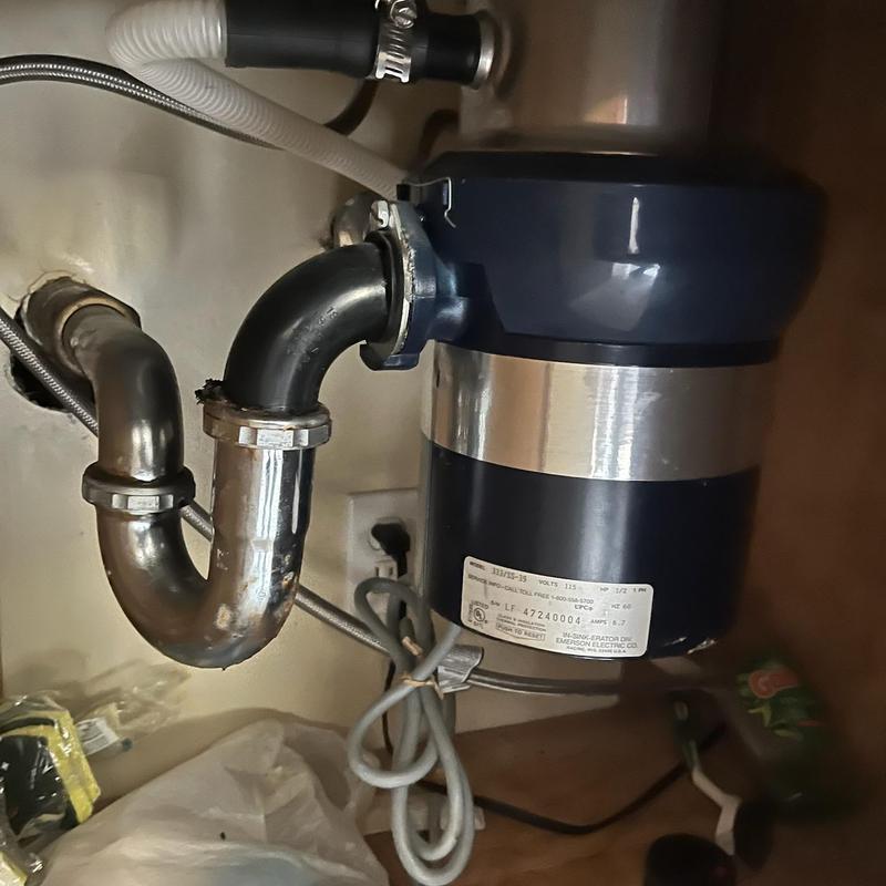 Heises Plumbing repaired a jammed garbage disposal at a residential property in San Mateo, California. A plastic obstruction was removed, and the unit was manually reset. The team tested the disposal and drain to confirm both were working correctly.