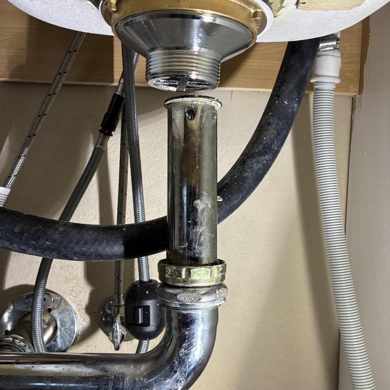 Heise's Plumbing repaired an emergency sink leak in San Francisco, California. The team replaced a short flanged tailpiece, broken lock nut, and faulty washer. Technicians secured all plumbing connections and confirmed they were free of leaks after testing.