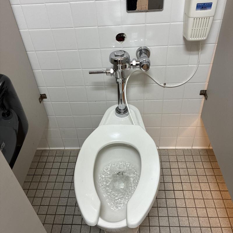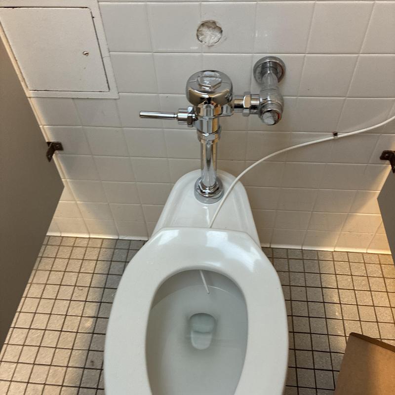 Heises Plumbing repaired a leaking Sloan wall-mount toilet at a commercial property in San Francisco, California. The team replaced a damaged gasket, resecured a loose spout, and reassembled the unit. After all parts were reinstalled, they tested the toilet to confirm the leak was fixed and all connections were secure.