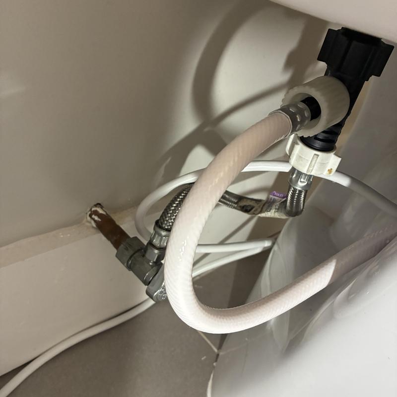 Heises Plumbing installed a Flushmate pressure-assist tank into an existing toilet and replaced the water supply line at a home in Redwood City, California. The team ensured all connections were secure and tested the system for proper function, providing stable water flow and leak prevention.