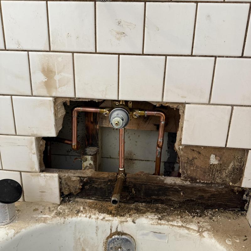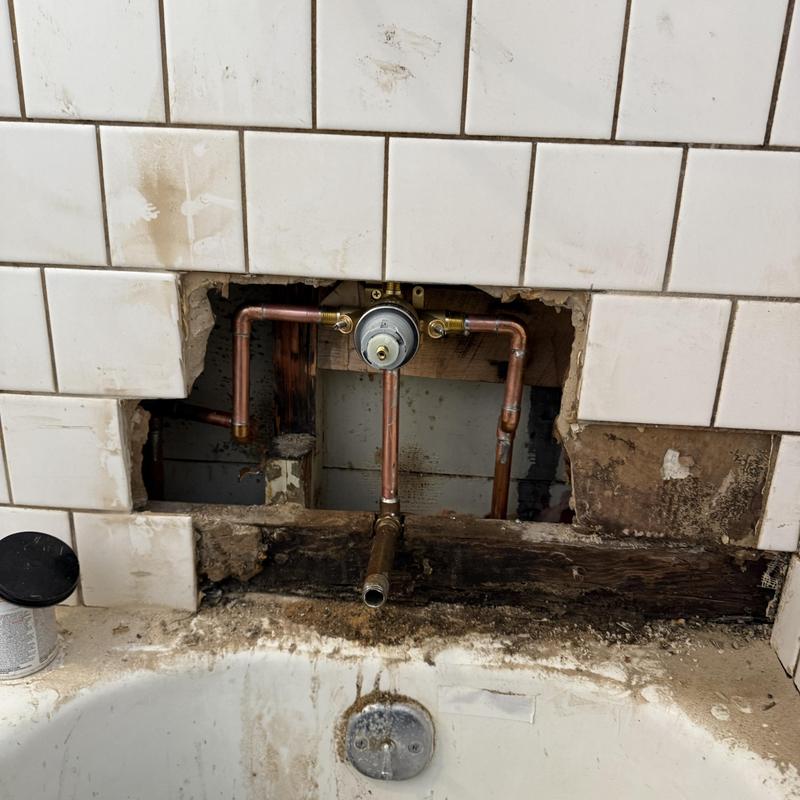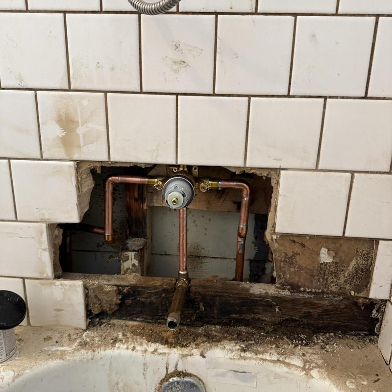 Heises Plumbing replaced a faulty shower valve and repaired tile access at a residential property in San Francisco, California. Technicians accessed the plumbing by cutting the tile wall, installed the new valve using copper and brass fittings, and tested the system to ensure proper operation without leaks.