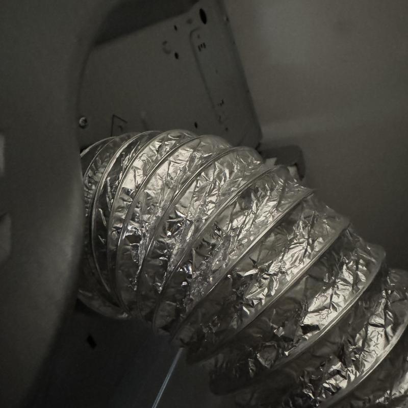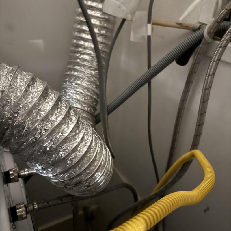 Heises Plumbing inspected a dryer in Menlo Park, California, after the customer reported a rattling sound. They found incorrect support rollers causing the drum to lock during rotation. The team also replaced the dryer vent but will return with a shorter vent to align the dryer with the washer. Correct replacement parts are being sourced.