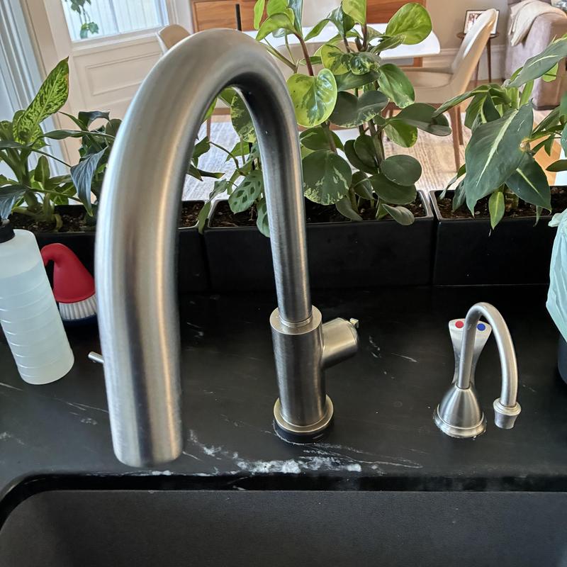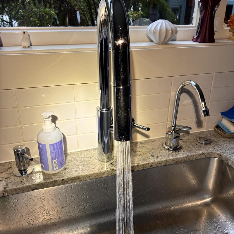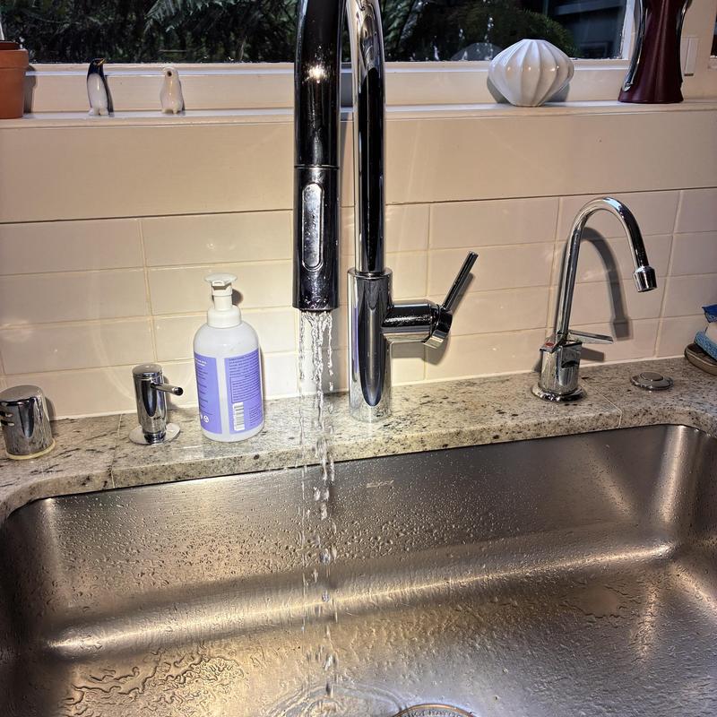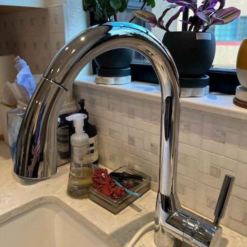 Heises Plumbing replaced a Hansgrohe kitchen faucet with a Moen model in San Francisco, California. The installation was completed successfully, and the faucet operates correctly. The customer plans to order additional sprayer heads if needed.