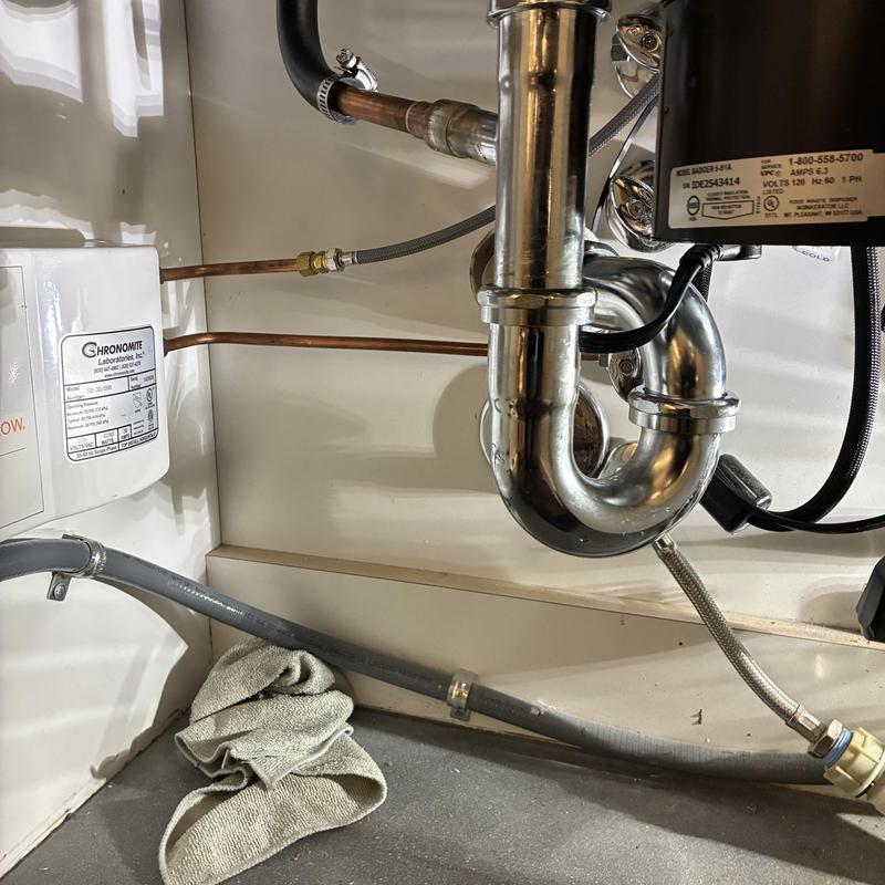 Heises Plumbing repaired a jammed garbage disposal at a residential property in San Mateo, California. A plastic obstruction was removed, and the unit was manually reset. The team tested the disposal and drain to confirm both were working correctly.