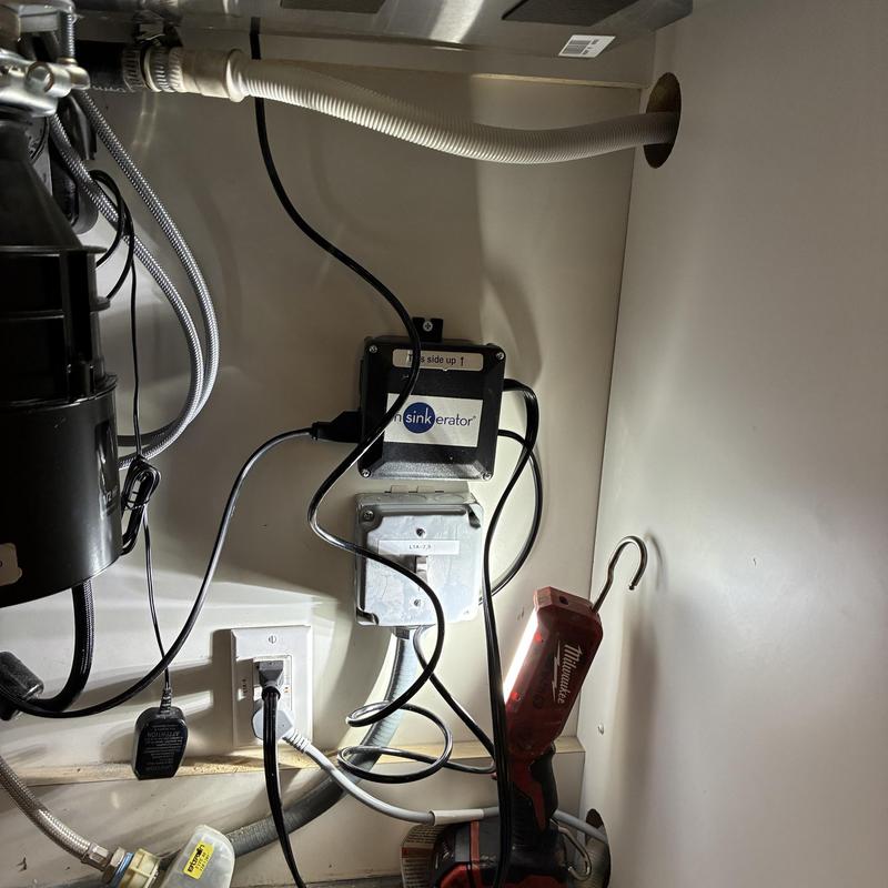 Heises Plumbing installed a customer-supplied garbage disposal and air switch in a San Francisco residence. The team removed the existing P-trap and basket strainer, added a new extension hose and P-trap, and secured all connections. They tested the system to confirm proper function and found no leaks.
