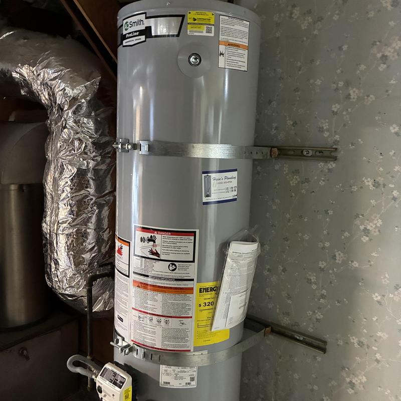Heises Plumbing replaced a water heater in Menlo Park, California. The technician installed a 40-gallon shorty model, added seismic straps, soldered a 1 MIP fitting, replaced the gas flex line, secured the flue pipe with self-tapping screws, and tested all systems for function, gas safety, and venting integrity.