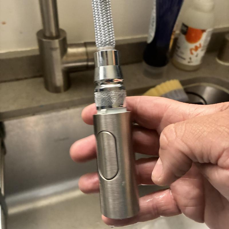Heises Plumbing repaired a leaking kitchen sprayer at a San Francisco residence. The plumber tightened the retaining nut on the sprayer hose, stopping the leak and restoring normal function. The sprayer was tested and confirmed to work properly.