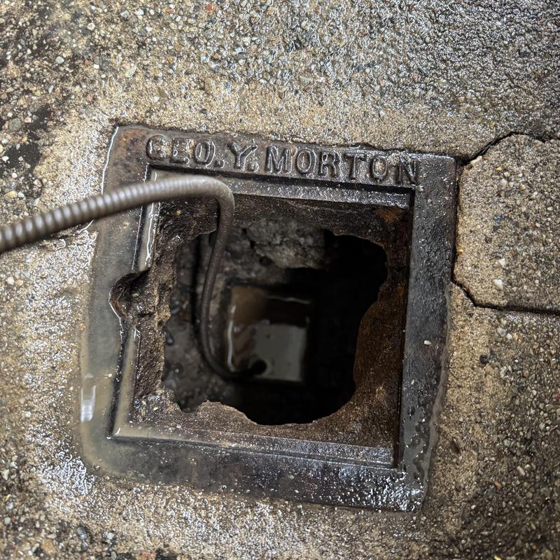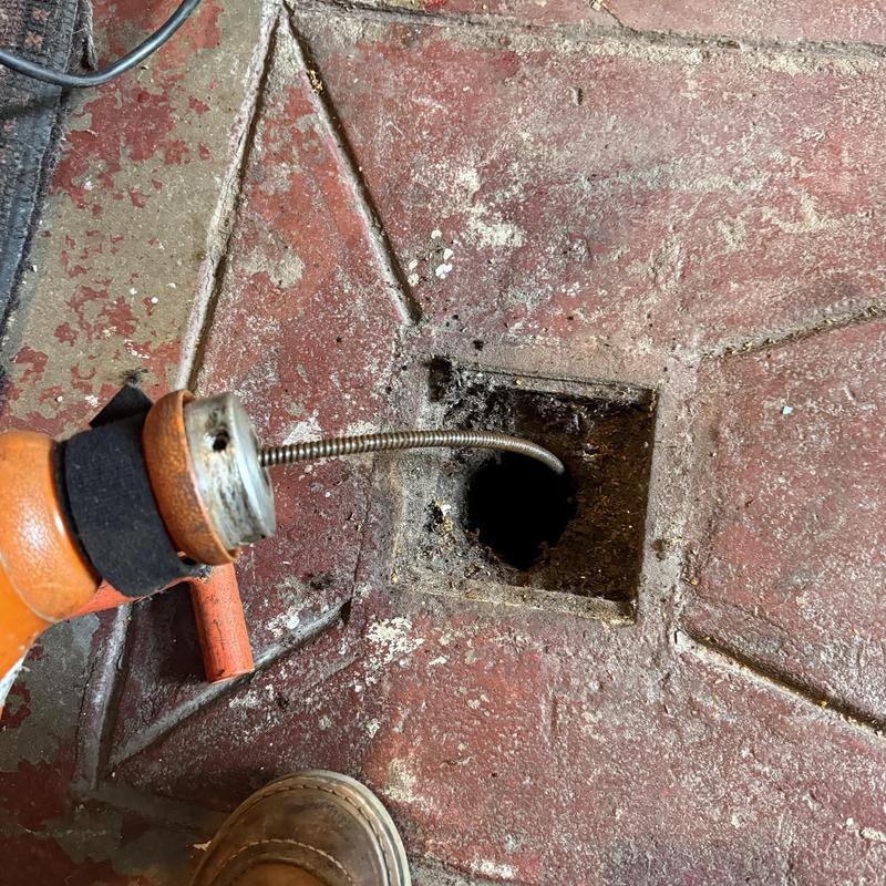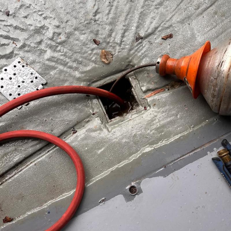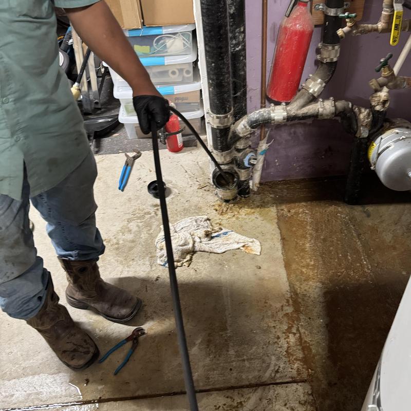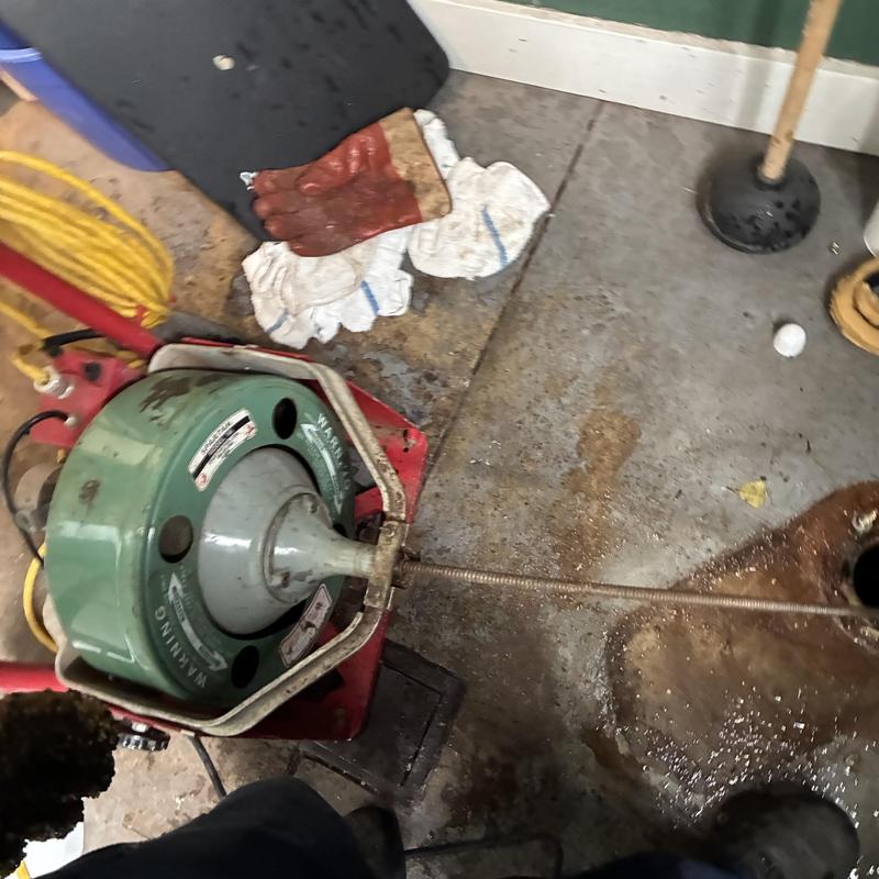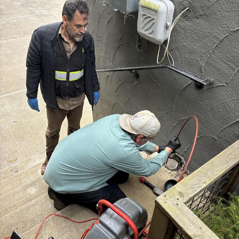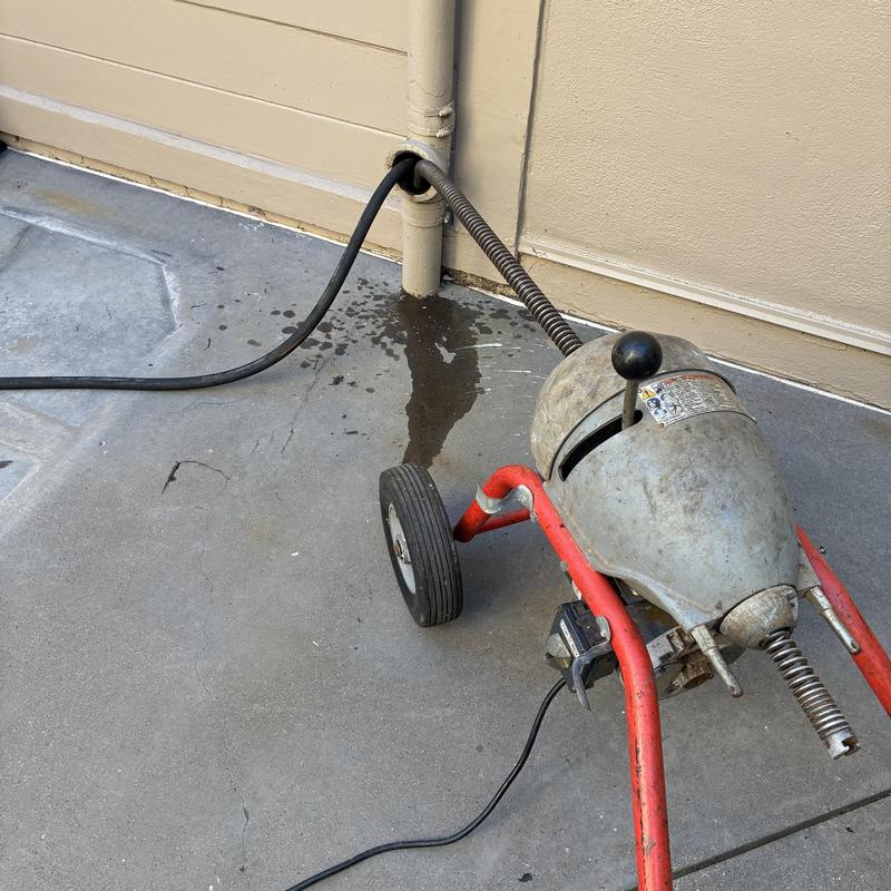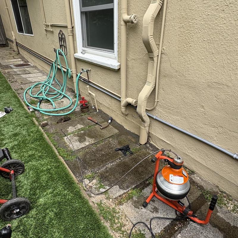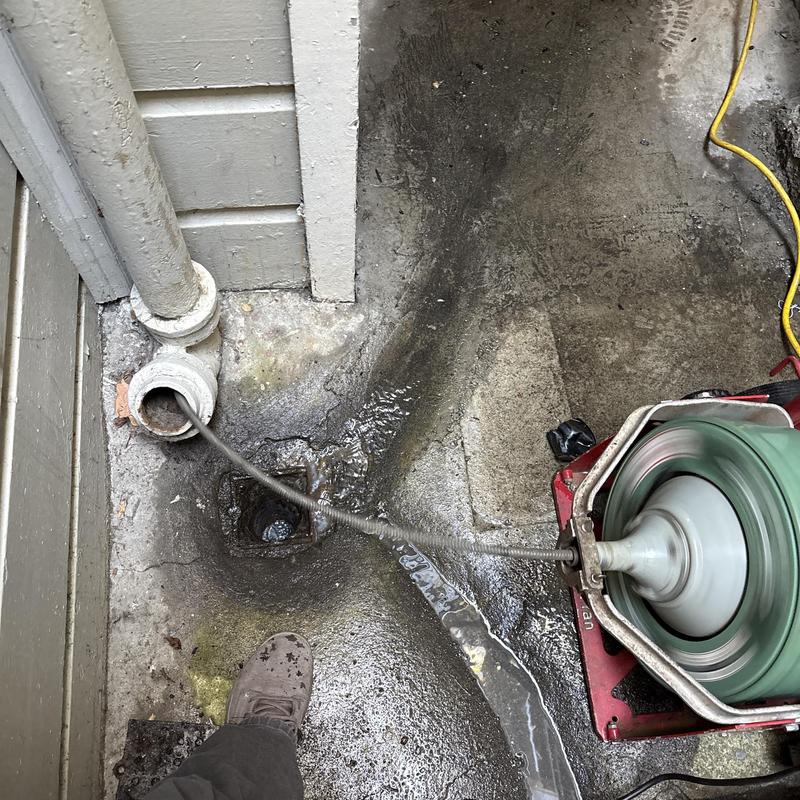 A plumber cleared a sewer main line and removed a kitchen clog during an emergency service in Portola Valley, California. The team snaked the main line and confirmed that water flowed correctly through the system. The issue involved sink water backing up through a floor drain, which was resolved during the visit.