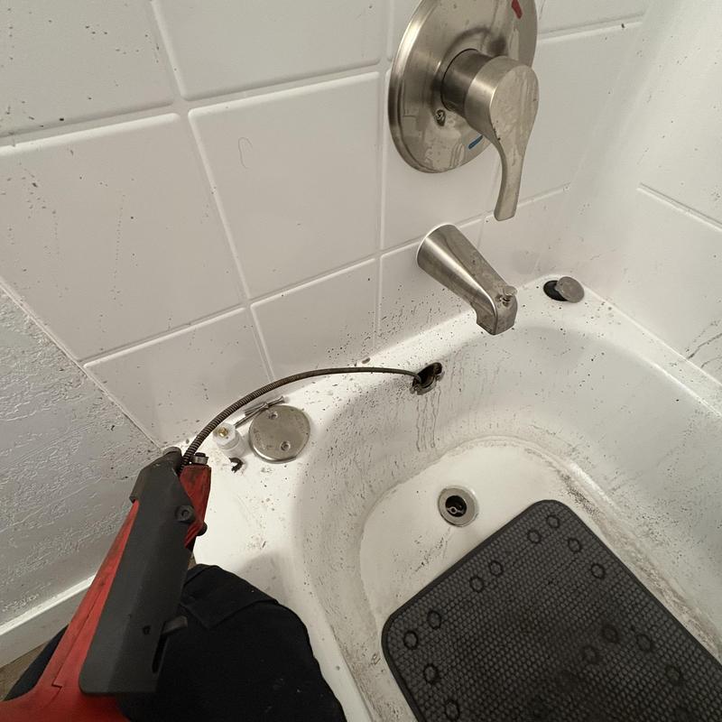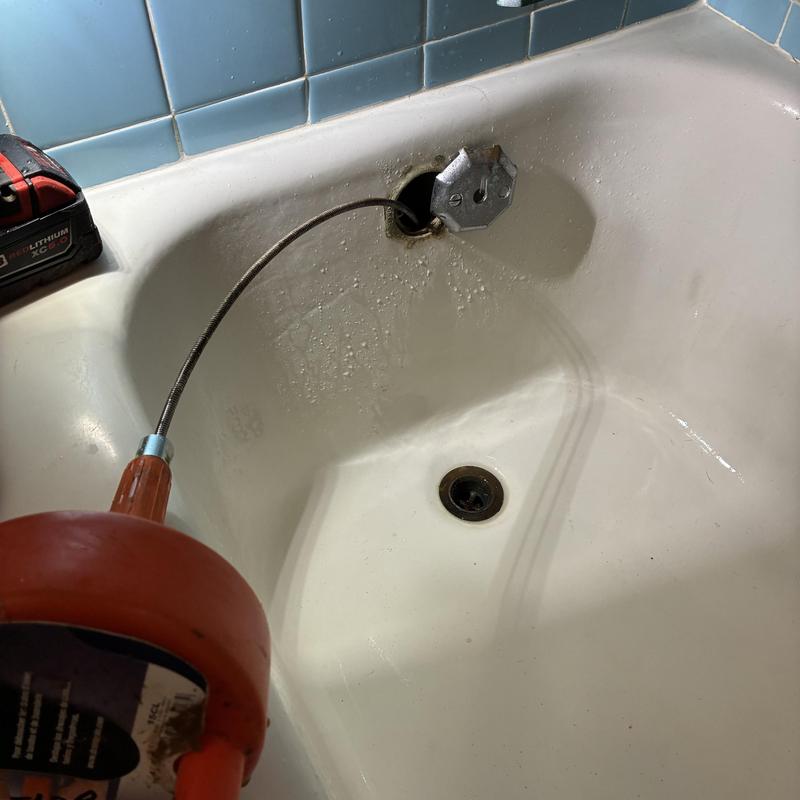 Heise's Plumbing cleared a clogged bathtub drain during an emergency service in San Francisco, California. A plumber used a 15-foot auger to remove a hair blockage and tested the drain to ensure normal water flow.