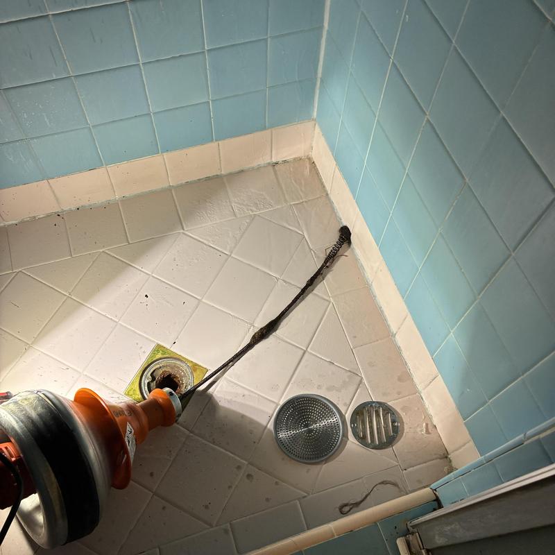 Heises Plumbing cleared a clogged shower drain in a San Francisco single-family home. The technician used a cable to remove hair and debris from the drain line. After cleaning, they tested the drain multiple times to confirm proper flow with no backups.
