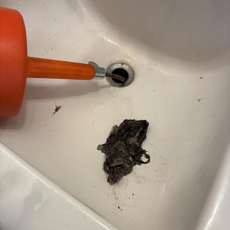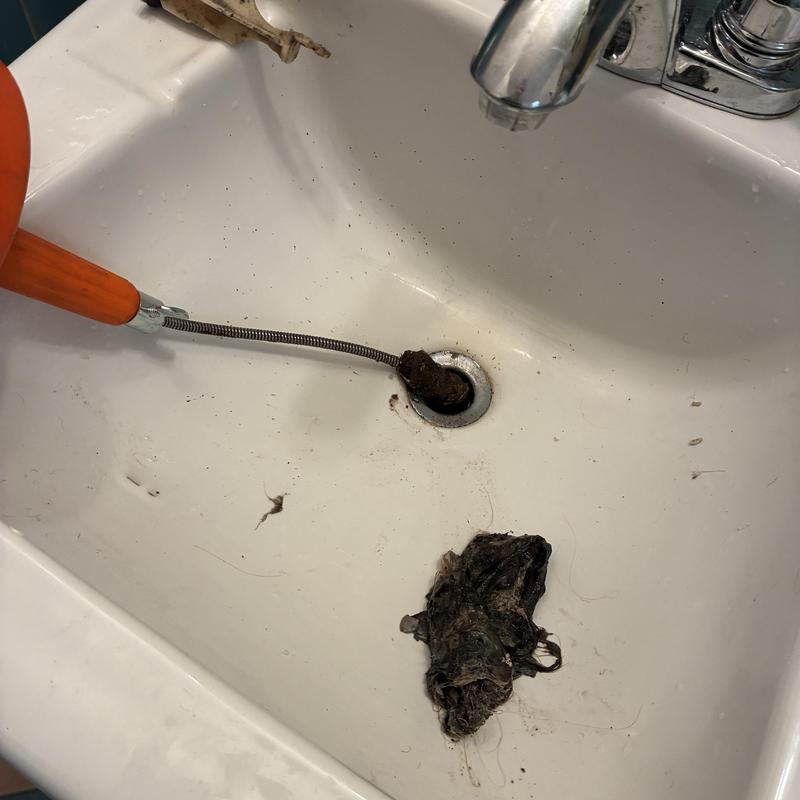 Plumbers in Redwood City cleared a basin drain blocked by a large hair clog. They snaked the drain, removed the obstruction, and tested water flow by running and refilling the sink. A final inspection confirmed the drain was clear, leak-free, and functioning properly.
