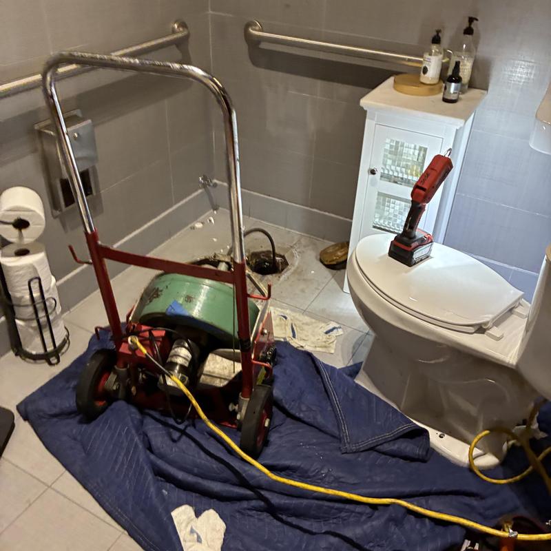 A licensed plumber removed a toilet to access the drain and clear a sewer line blockage at a property in San Francisco, CA. They used a sewer machine, ran a supply line to check flow, and flushed the system multiple times to confirm the blockage was resolved. The plumbing system now functions normally.