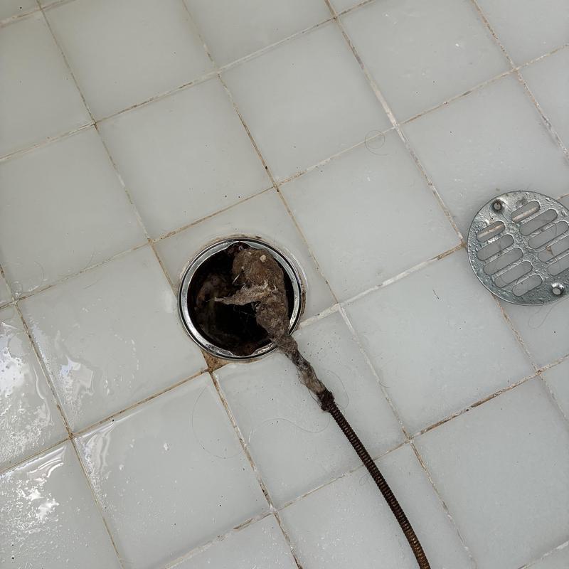 Heises Plumbing cleared a clogged shower drain in Portola Valley, California. The technician removed a hair blockage and used hydro-jetting to clean the drain line. After flushing the system, they confirmed normal drainage and restored full shower use the same day.