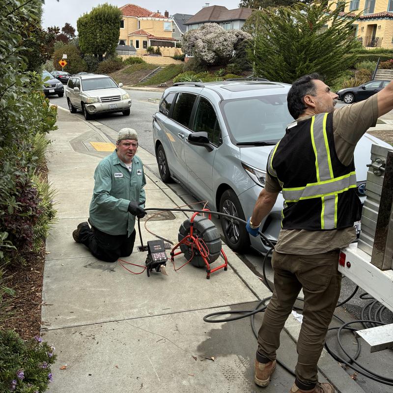 A technician in Daly City, CA completed a sewer line camera inspection and trenchless installation. The service included locating the sewer line, obtaining required permits, installing a new line, disconnecting the old line, managing traffic safely, and restoring the asphalt surface to meet city standards.