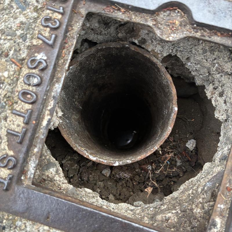 Heise's Plumbing cleared a clogged downspout and drain line in San Francisco, California. The team removed grease buildup, a toy ball, and a 45-degree fitting to access the blockage. They snaked the line and scheduled hydro-jetting to address remaining buildup in the 3-inch pipe.