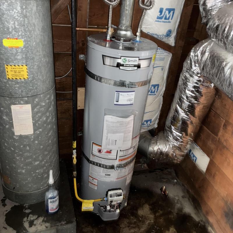 Heises Plumbing installed a 50-gallon AO Smith water heater in San Francisco, California. The team removed the old unit, added earthquake straps meeting California codes, and reconnected gas, water, and vent lines. All connections were tested to confirm proper operation. The installation site was left clean and the system fully functional.