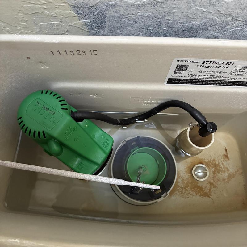 Heises Plumbing repaired a running toilet at a home in Redwood City, California. Technicians replaced the faulty fill valve and flush valve with new Fluidmaster and Toto components. After installation, they tested the toilet to confirm proper operation and resolved the issue.