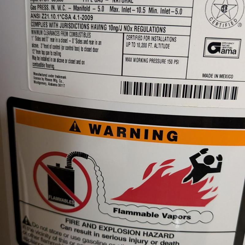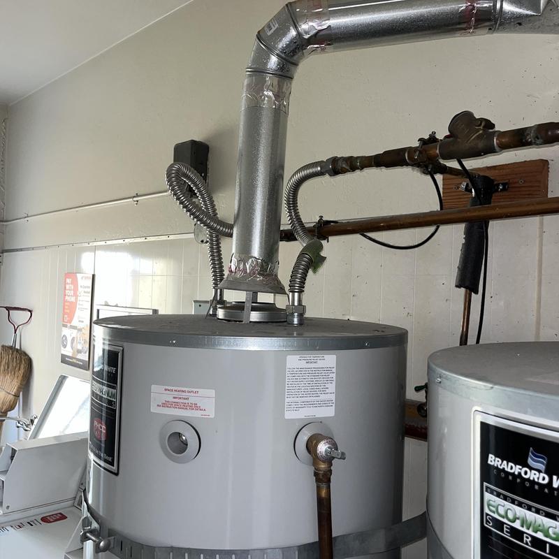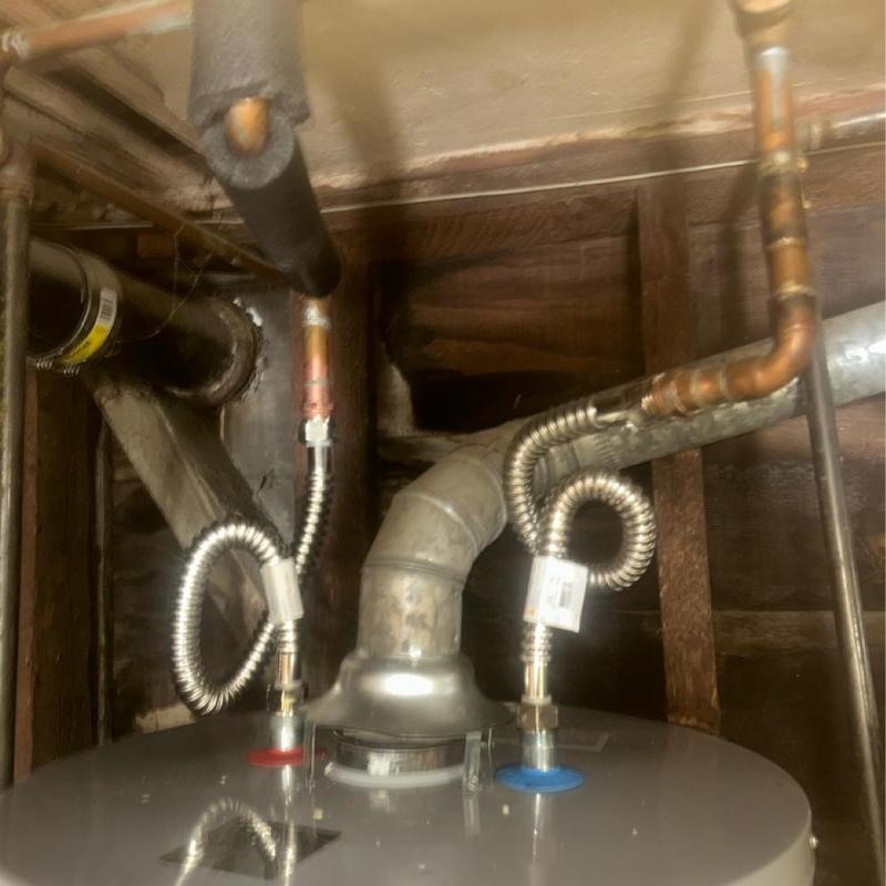 Heises Plumbing replaced a water heater in Menlo Park, California. The technician installed a 40-gallon shorty model, added seismic straps, soldered a 1 MIP fitting, replaced the gas flex line, secured the flue pipe with self-tapping screws, and tested all systems for function, gas safety, and venting integrity.