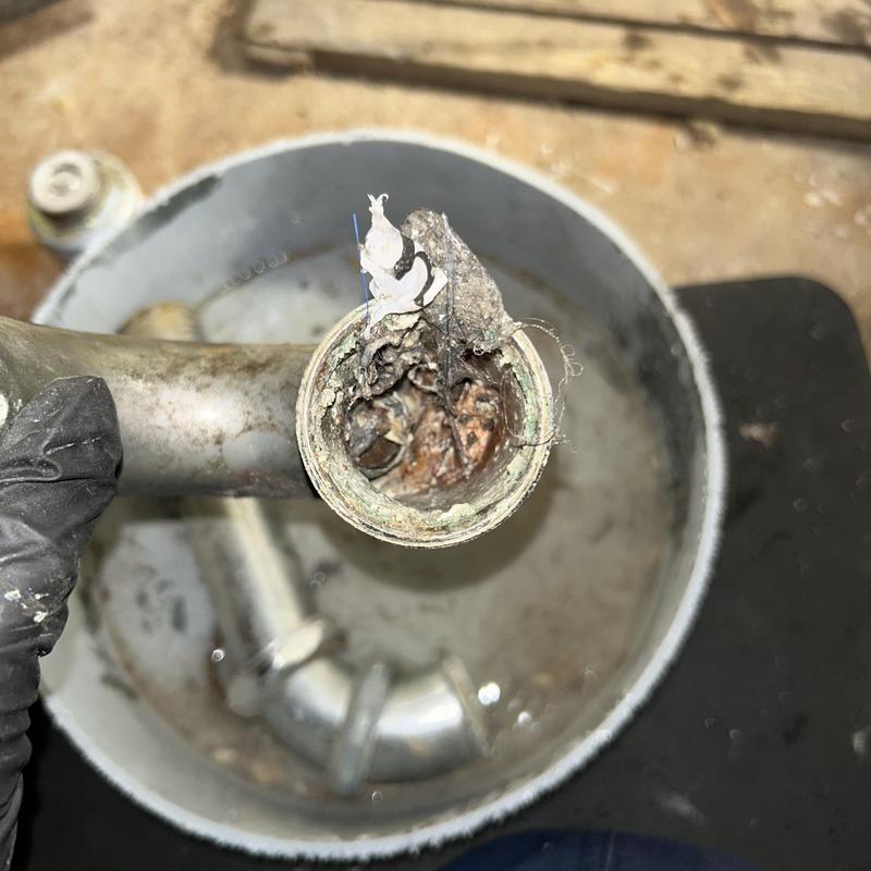 A plumber in San Francisco repaired a clogged garbage disposal and a damaged airgap. The technician replaced a crimped hose, cleared food debris from the disposal port, and installed a new airgap. Water flow was restored, and the kitchen sink drainage system now works properly.