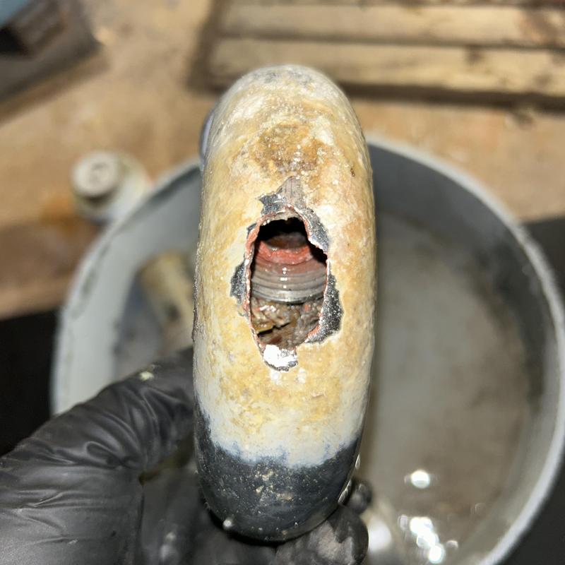HEISE'S PLUMBING replaced a leaking kitchen sink line in San Francisco, CA. The team removed the damaged tee and pipe section, then installed a new copper pipe with a tee fitting to restore proper water flow.