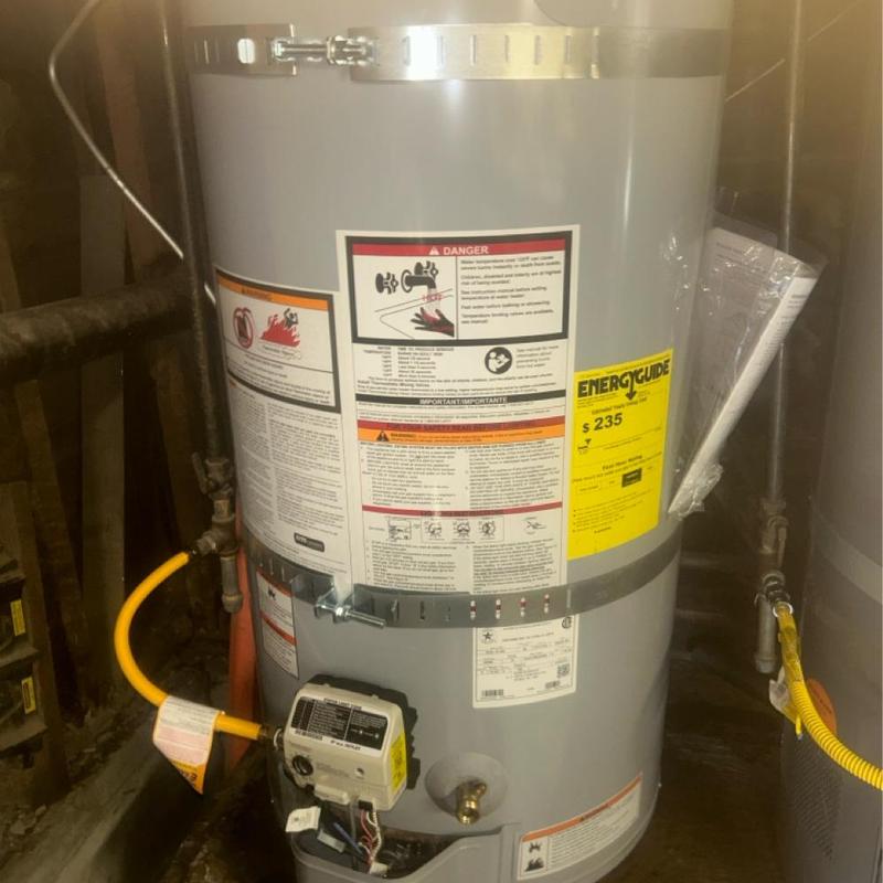 Licensed plumbers installed a 50-gallon gas water heater in San Francisco, California. They removed the old unit, secured the new tank with earthquake strapping, and verified all plumbing and gas connections. The installation met safety and building codes. The team tested the system to confirm proper hot water flow and energy efficiency.
